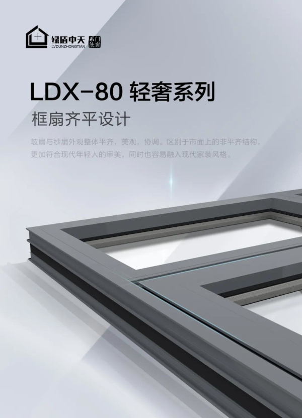今年度,绿盾中天通过设计,推出瞩目已久的窄边80系列。其99%宽阔的视觉视野,让空气和光线都能自由互动。