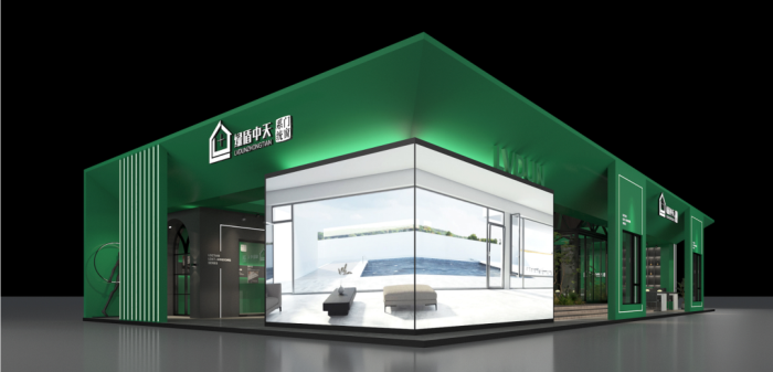 绿盾中天2021广州建博会展馆,以健康色系现代设计为基调,用理想的色系设计去展示门窗产品,门窗的一切都尽数展现在参展者眼前。