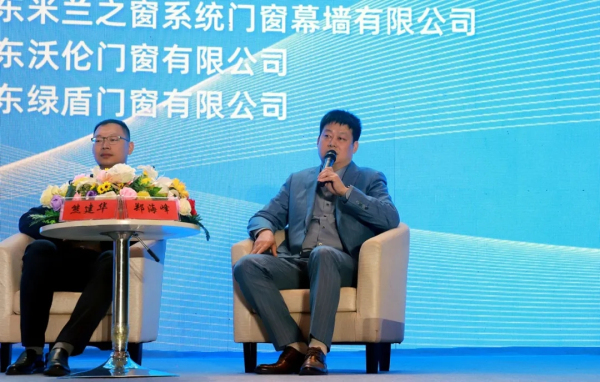 绿盾中天门窗董事长郑海峰应邀出席,就行业发展、企业经营思维与南北方行业差异三个维度与在座企业家进行了探讨,并希望与业内凝心聚力,智定未来,以时代发展和消费者需求为导向,携手执领门窗行业未来 。