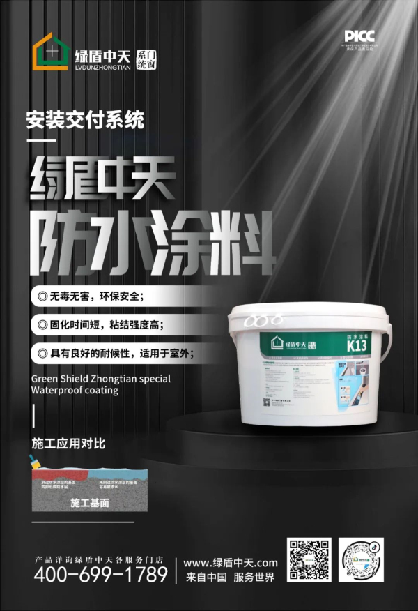 绿盾中天门窗针对安装中出现的问题,将安装交付标准化、规范化、数据化整合,推出了绿盾中天安装交付系统。本期小编带大家走进绿盾中天安装交付系统之专用【防水涂料】。