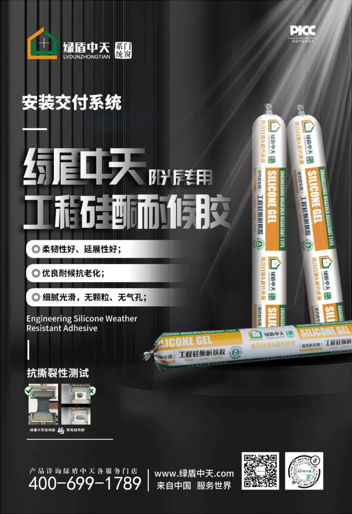 绿盾中天门窗针对这一环节将安装交付标准化、规范化、数据化整合,推出了绿盾中天安装交付系统。本期小编带大家走进绿盾中天安装交付系统——绿盾中天阳光房专用工程硅酮耐候胶。