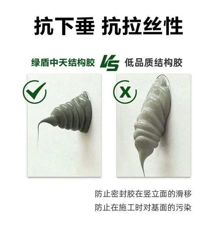 抗下垂性能可有效防止密封胶在竖立面的滑移,在竖立面作业时更方便,**的抗拉丝性能防止在施工时对基面的污染。